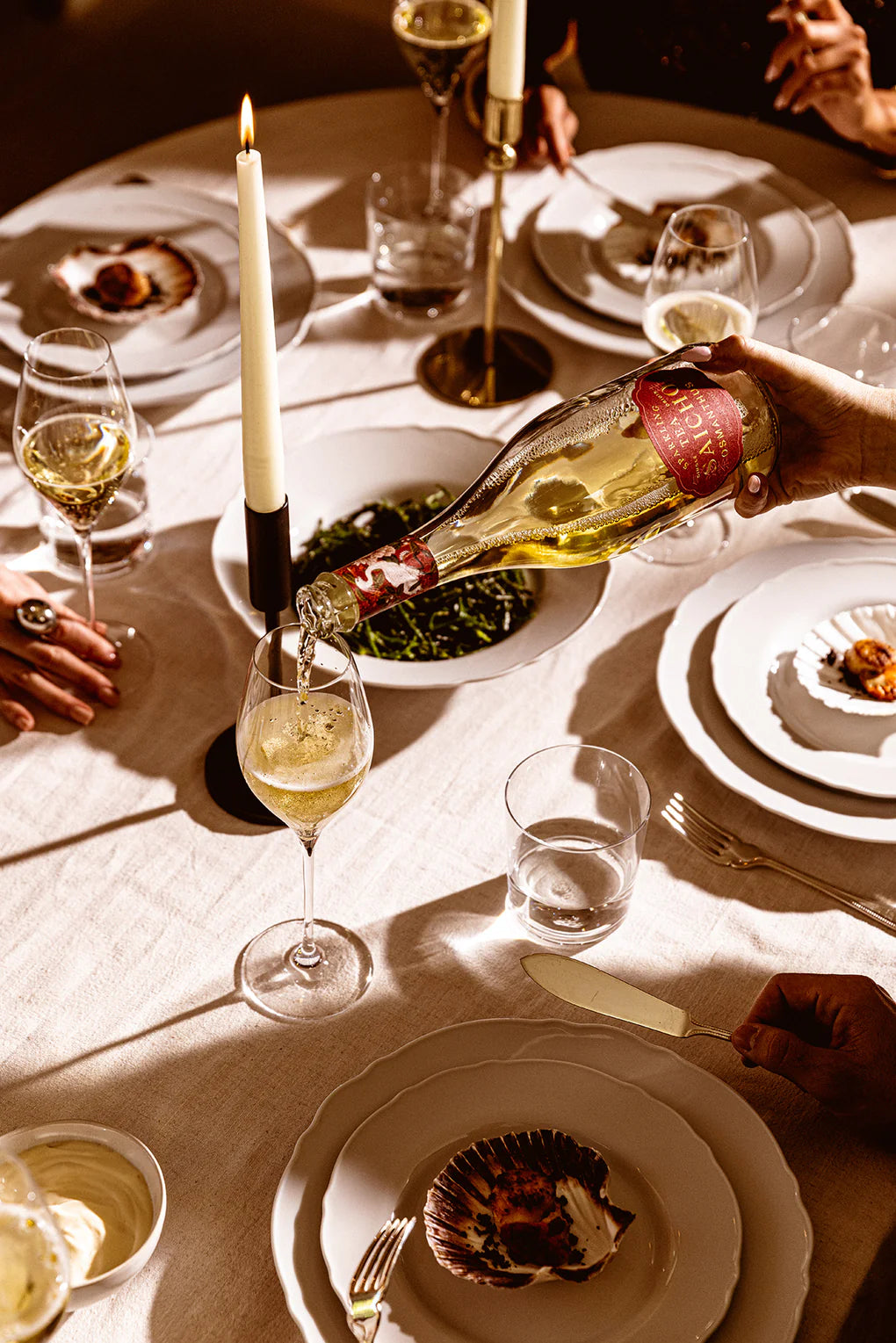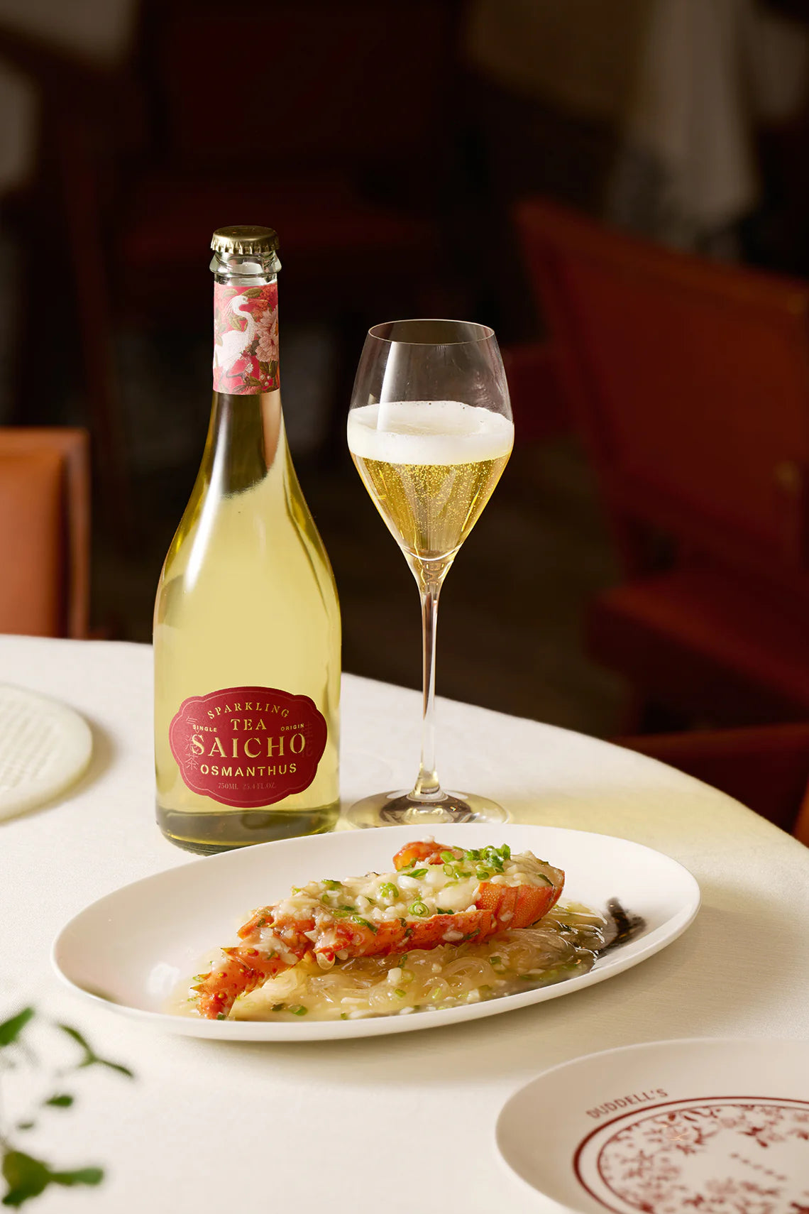 Saicho Osmanthus’s delicate floral and stone fruit notes make it a wonderfully versatile pairing—its freshness lifts light seafood dishes like scallops, sashimi or ceviche, while its gentle sweetness complements fruit-based desserts such as apricot tart, poached pear or peach cobbler, especially when kept light and elegant